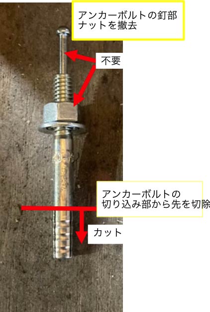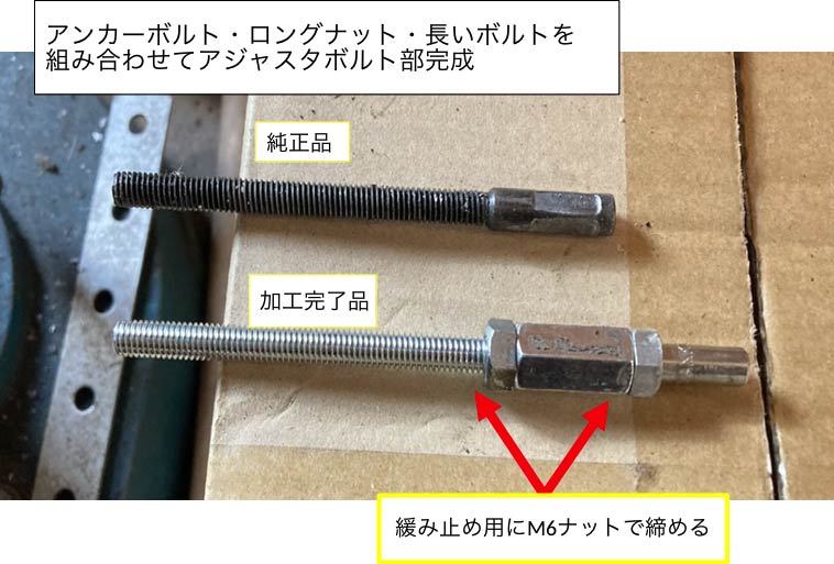 アンカーボルト・ロングナット・長いボルトを組み合わせてアジャスタボルト部が完成。