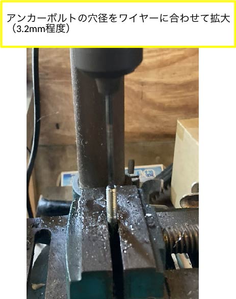 次に、断裂した側にあるワイヤーとボルトを接続するためのアジャスタボルトを作成する。