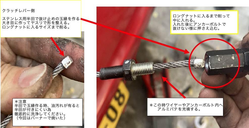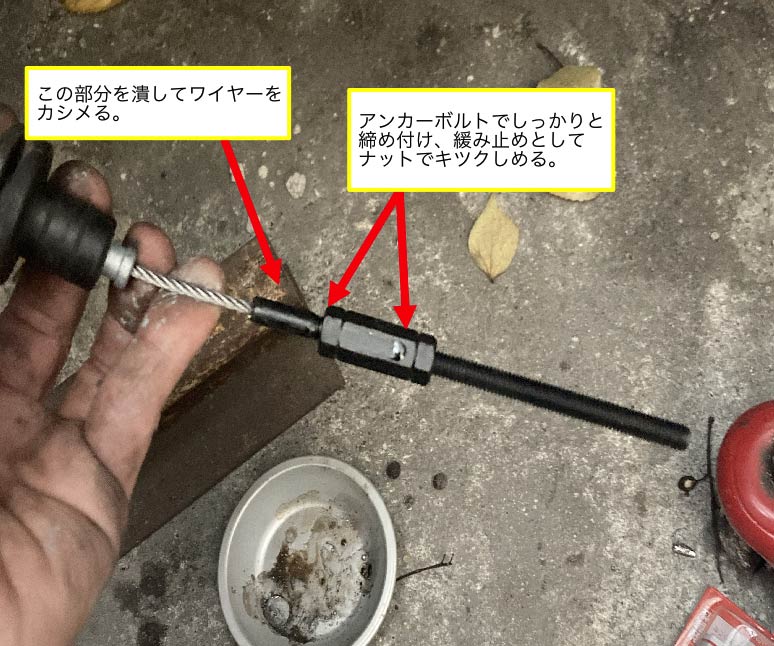 ワイヤーとアジャスタボルト部とをつなぎ合わせる。