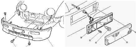 以下の写真は、本来のAZ−1のウインカーレンズと改造予定のウインカーレンズの様子を比べたところ。バンパーのウインカーのレンズがつく穴は、よく見ると2段になっており、ノーマルのレンズは下の段にはまっている。ところが新たにとりつけるレンズは、短片側はぴったりの寸法だが、長片側は若干長くなっている。そのため、ノーマルのレンズより、1段高い段に取り付けることになる。