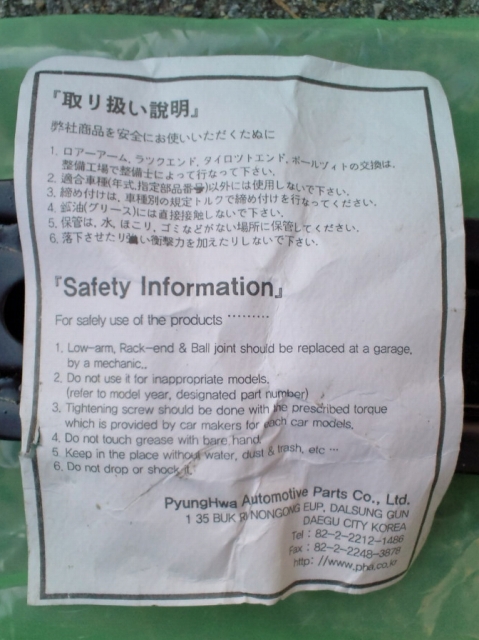 説明書のアップ。それらしい日本語が書いてあります。