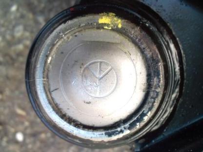 互換品のボール・ジョイント部の裏には、ピースマーク?の様なものが書いてあります。