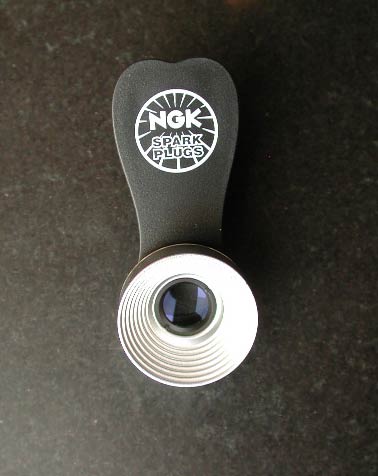 NGKのブースに立ち寄ったら、スマホにつけるマクロレンズをもらった。