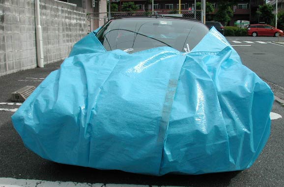 以上、外部から水圧がかからない状態での、ブルーシートにくるまれたAZ−1を見てきた。が、実際の浸水時は外部から水圧がかかることで、くるんだブルーシートの形状が変わってしまう可能性がある。一部はゆるみが生じることでブルーシート内への浸水を招き、一部はぱっつんぱっつんになってブルーシートが破れたり、紐が切れたりするかもしれない。家庭用プールにAZ−1を入れ、さらにブルーシートでくるんで水を注入し検証してみないと、実際にどうなるかわからない。それとも「生成型AI」を使ったら、ブルーシートの変形度合いなどが予測できるのだろうか。