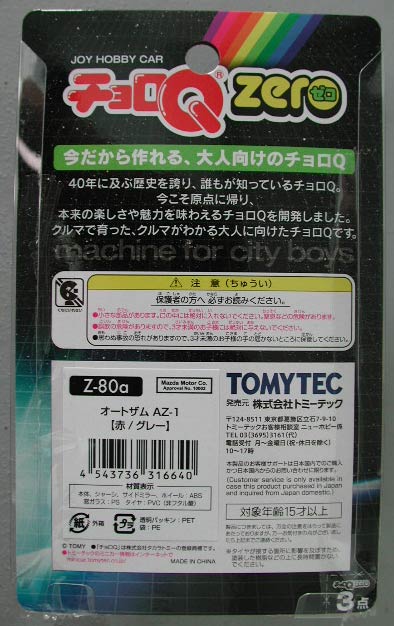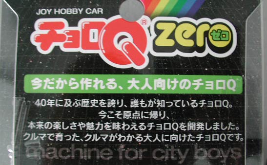 裏面。大人向けチョロQがコンセプトである、チョロQzero。2022年頃からは、スーパーカーを中心にラインナップ化されてきた。