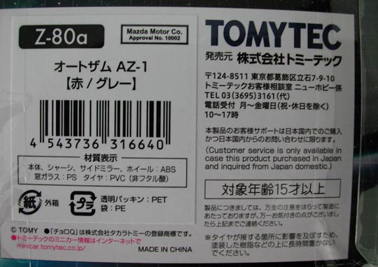 ブリスターパックをよく見ると、表面がチョロQの「Q」になっている。