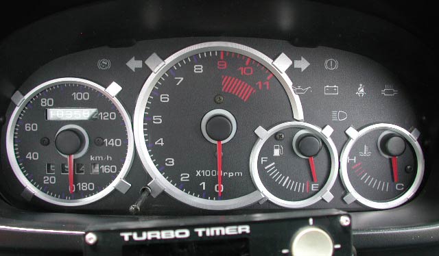ここからはがらっと変わって、黒地のELパネルとCARXIONE製メーターリングを組み合わせたケースをみていく。銀色我より際立ってさらに格好良く見える。