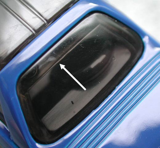 あと、マチボックスのほぼ全モデルにある特徴を。矢印で示すよう、リアのウインドウにリブ(という表現が正しいのか??)が入っている。