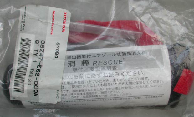 使用したのはホンダ純正で設定された消棒レスキュー。未使用品をヤフオクで買い、使用期限は2017年となっている。なお実験したのは2024年。古い物と新しいもので性能差がある可能性はある。が、もう一度ムービーをよく見て欲しい。消火実験のムービーの多くは4:3となっている。つまり2017年より前に撮影されたと考えるのが自然なムービーだ。にもかかわらず古い方が勢いがいい。となると2017年時点ではデチューンされて単位時間あたりの噴射量が少なくされたとでも言うのか??