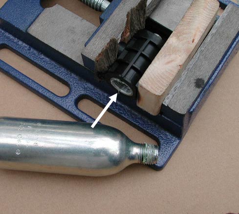 頭を叩くとニードルが飛び出る。ニードルの中心には穴があり、そこを通って二酸化炭素が噴射されるのだ。