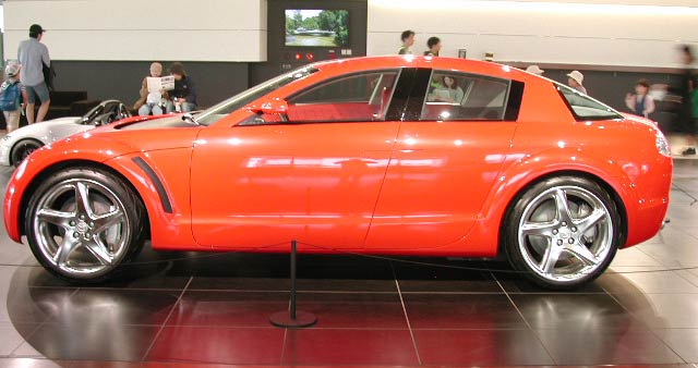 RX-EVOLVとアイコニックを同時に比較すると、RX-EVOLVがまあカッコ悪いこと。RX-8とベリーサが一緒になったような、ずんぐりむっくりとしたような形に見えてくる。具体的にはトレッドが狭くて背が高く、リアのコンビランプも大きくて丸いので、不細工としか言いようがない。が、RX-EVOLVが格好悪く見えるということは、それだけデザインが進歩したということなんだろう。