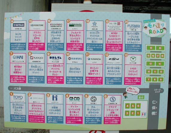 タウンフェスタでは、マツダのみならず各サプライヤも出展している。各サプライヤは同じブロックにかたまっているのだが、今回は橋の下・・・この橋はマツダの橋ではなく一般道(県道)である。この橋より南に行くと、国道2号線がマツダの敷地の上を通っている。