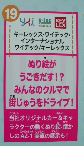 キーレックスのブースを発見。3社合同のブースだ。イメージできないが、動く塗り絵というものもあるようだ。