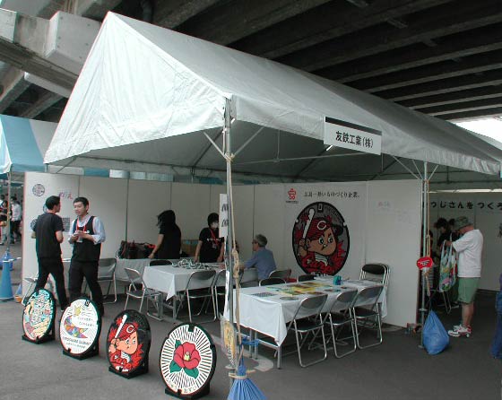 展示されていたカラーマンホール。あなたの町にあるカラーマンホールは、友鉄工業製である可能性は高いぞ。