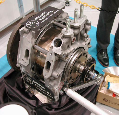 概要を見てきたところで、8Cのカットモデルを見ていこう。カットモデルといっても、ローターハウジングをカットすることなくごっそり外したモデルである。