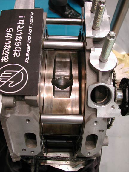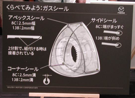 特徴的なのは、ローターの燃焼室。この凹みで局所的に着火して、その後に火炎がいい感じで伸びていって、効率的に運動エネルギーに変わってちょうーだい、と言っているかのような形状だ。
