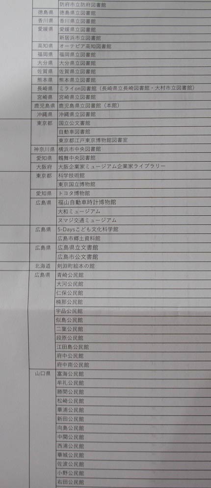 この社史、販売されていない。これじゃあ読めないよという方、実は各県にある国公立の図書館などに寄贈されているので、そこで見ることができる。どこにあるかのリストは下記を参照のこと。