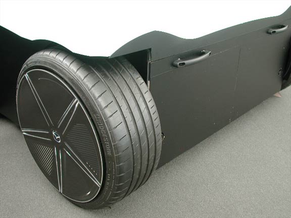 タイヤ。プリントアウトされたホイール表面が貼り付けられている。また移動させやすいように取っ手がついている。