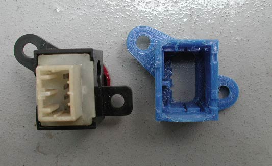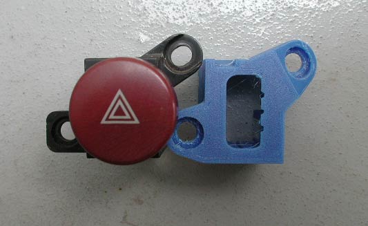 実際の取り付け例。使用したのは完全崩壊したハザードスイッチ。既にボタンすらない。