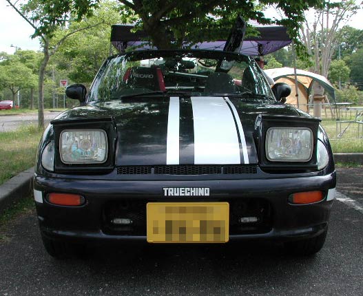 ライトが大きくてアンバランスなんだけど・・・前に寄ってみたら、「TRUECHINO」(トレチーノ)と書かれていた。このライト、トレノのヘッドライトとのこと。