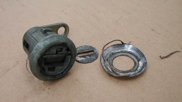次に(というか練習がてらこちらを先にしてもいいかも)、MAもしくはMC系ワゴンRのキーシリンダーを、同様のやり方で分解し、キーシリンダーの中に入っているスプリング等を取り出す。