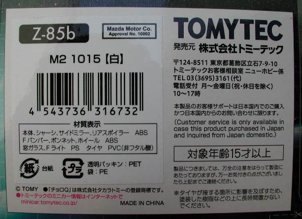 ノーマルと異なっているのは、右上に貼られているラベル。ここに、AZ−1の文字はない。M2 1015のみ。