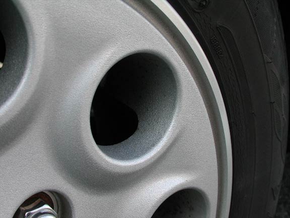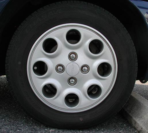 これ、カウンタックについているリボルバータイプのホイールに見えなくもない。リボルバーは5穴に対し、このホイールは8穴と、ちょっと穴の数が多いけど・・・穴の奥行きもそれなりにあるし。AZ−1に装着するとカウンタック風になる??