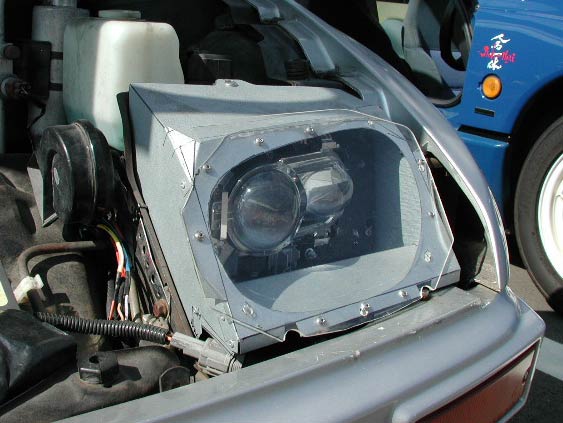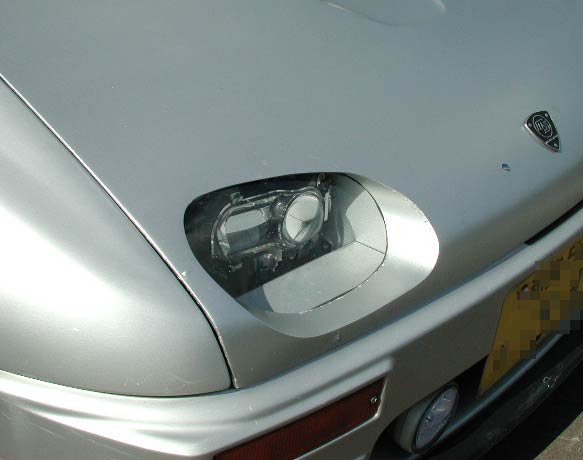 ヘッドライトを改造されている、おーよっしーさんのAZ−1。詳細を見せてもらった。