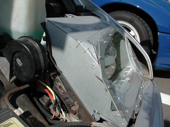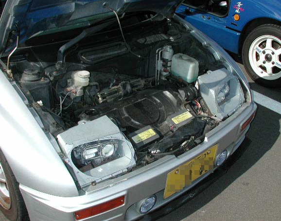 ボンネットを開けてもらった。すると、ヘッドライトは自作のケースに入っている事がわかった。