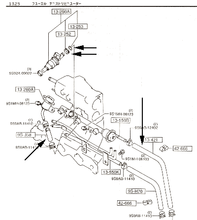 テストピースには、実際にAZ−1で使われているものを使用した。写真の1番と2番はインジェクタの部分に使われているもの、3番は燃料タンクの中に浸かっているもの、4番はフュエルホース、5番は余分なガソリンを戻すホースである。これらをガイアックス、ガソリン、アルコールの中に2週間入れ直射日光の当たらない屋外に置き、状態の変化を観察した。なおこれらの中で一番膨潤しやすいと考えられる溶剤は、分子の大きさが最も小さいアルコールである。