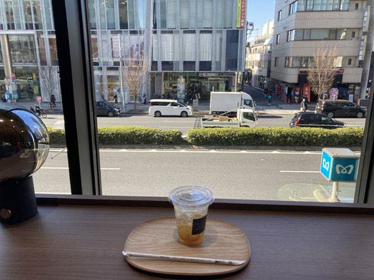 私はレモンスカッシュを頼んだ。1階でも飲めるが2階にも飲めるスペースがある。下の写真は2階からの眺め。ちなみに「レスカ」(レモンスカッシュの略)は通じなかった(爆死)。それじゃあ「レーコー」は通じるのかと問い合わせがあったのだが、絶対に通じないと思う。「レーコー」とは、「冷コー」→「冷たいコーヒー」→「アイスコーヒー」の略である。