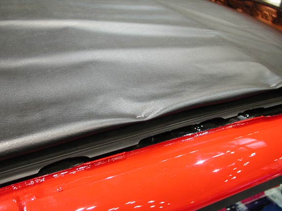 キャンパストップだが、ルーフには塩ビシートらしき物がつかわれており、しかもタッカーでとめられていた・・・