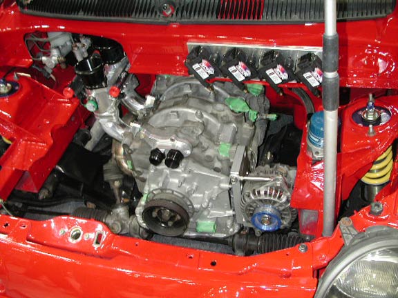 展示されていたのは、ロータリーエンジンを積んだキャロル。