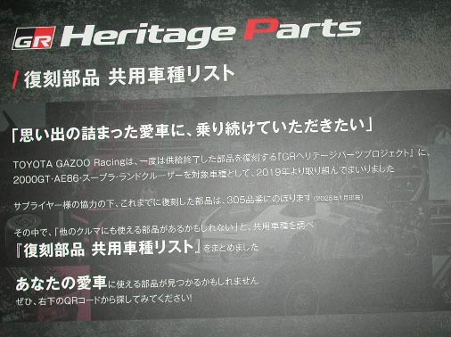 GR ヘリテージパーツプロジェクトは2019年から始まった、部品の復刻プロジェクト。説明書によると、2025年1月現在で305部品を復刻したそうだ。6年目に入ったが、勢いは収まらない。