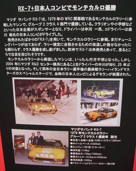展示されていたのは2台。まずはSAのRX-7、モンテカルロラリー優勝仕様車だ。