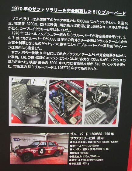 そしてもう1台、サファリラリー優勝仕様のブルーバード。