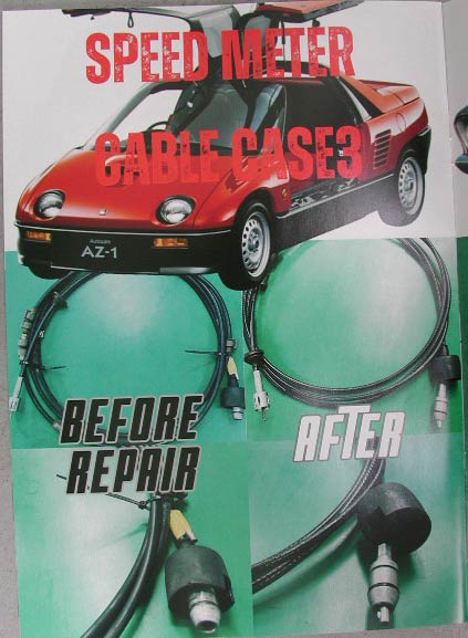 もらったパンフレットを見ていくと、なんとAZ−1のスピードメーターケーブルを再制作した例が載っていた。
