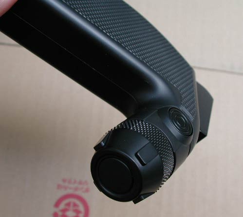 グリップの下部。飛び出ているのは本体の電源スイッチ。