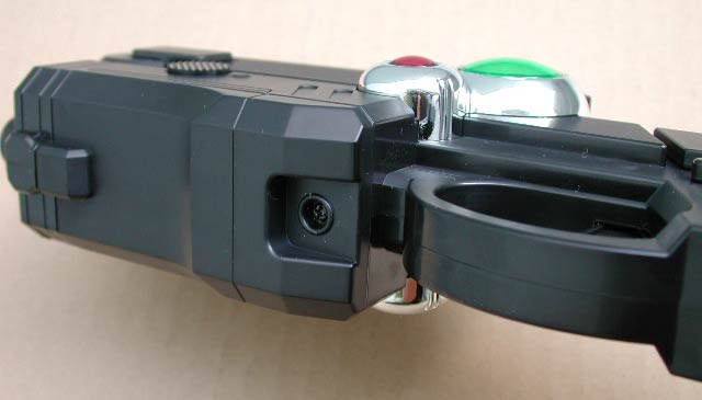 緑と赤のレンズ状の物は、エネルギーコーディングユニットと呼ばれるもので、「チャージ攻撃」をする際に光る。写真正面に見えるのがスライドと呼ばれる部分で、上記ムービーのように動く。本モデルにて最も可動域が大きい部分になっている。