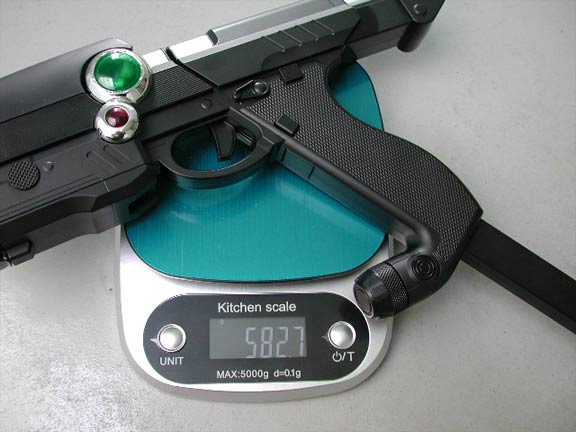 質量。当然標準・ロングカートリッジで異なる。正直、もうちょっと重い方が、よりリアリティーが増すような。鉄板ましましで1kg程度にしてもよかったのでは?