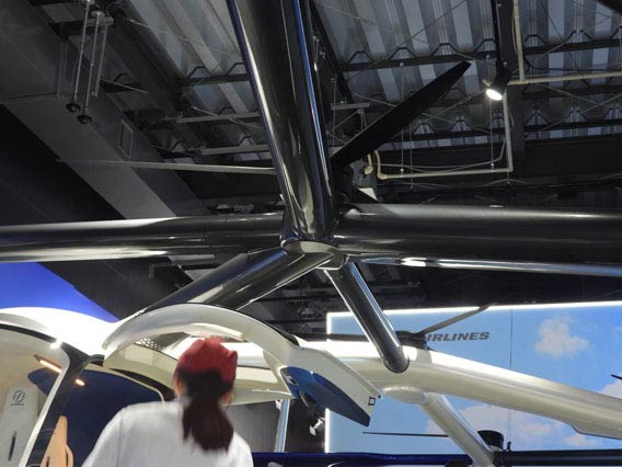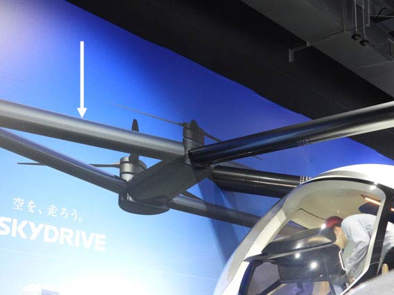 プロペラ。意外に小さい。一部が絵になっていることもあり、この空飛ぶクルマには何枚プロペラがつくことになっているのかよくわからない。
