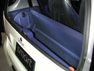 smartのラゲッジスペースは、たったこれだけである。段ボール箱を積むのも難しいくらいだ。smartにはスペアタイヤはついていない(応急のパンク修理材がついているだけ)。