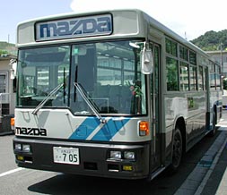 で、これが件の大型バス。ボディーには「mazda」と書かれているがマツダはこんなバスを作ってはいない。どこのバスかというと「いすゞ」製。
