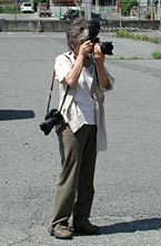 またマツダの社内報に掲載するために、カメラマンも同行。駐車場での集合写真をとったらおしまいだろうと思っていたのだが、なんと見学会の一番最後までついてきてくれた。
