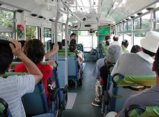 実はこの企画、マツダの総務部を通して実現した。そのため総務の方もいろいろと気をきかせてくれた。まずはミュージアムまでのバス。東正門からミュージアムまではそんなに距離は無いのだが、マツダ社内を循環している業務用のバスを1台ほど出してもらって、それに乗ってミュージアムまでつれていってもらった。
