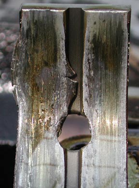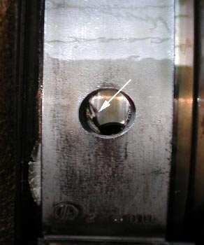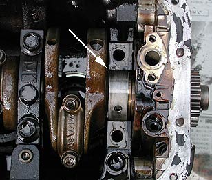 あ〜あ、オイル穴から金属片がのぞいてるよ。