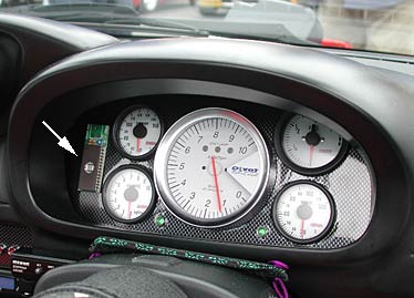 メーターを見ると、以前みたときよりも一層磨きがかかっていた。AZ−1もこんな感じだったら良かったんだが。ただ、このメーターにも欠点がある。それはオドメーターがないこと。メーターパネルを自作してみたい人は、この点も工夫してみよう。なお矢印で示してあるROMはダミーである。