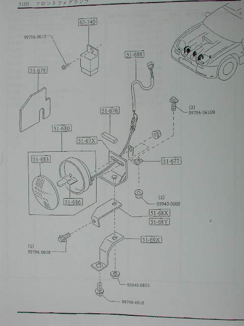 フロントのバンパー。M2の絵が実にへたくそなのも凄いが、価格が手書きになっているのがもっとすごい。それにしてもバンパーが高いのは仕方ないにせよ、取り付け金具の値段は法外である。