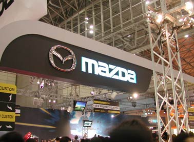 AZ−1の生みの親、マツダのブースである。今年はアテンザのマツダスピードバージョンとか新型プレマシーの発表タイミングと重なったため、珍しく(これでも)派手だったらしい。案内係りはマツダ本体の社員ではなく、ディーラーの社員だったようだ。