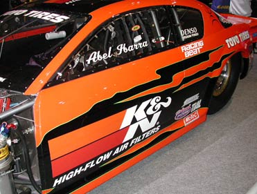 世界的に見ると、ドラッグレースは非常にマイナーである。ボディーに書かれているスポンサーの広告も、日本ではあまりなじみのないものが多い。このRX-8にはK&N(エアフィルターのメーカーとして有名だが、日本ではマイナー)のロゴが一番大きく書かれていた。